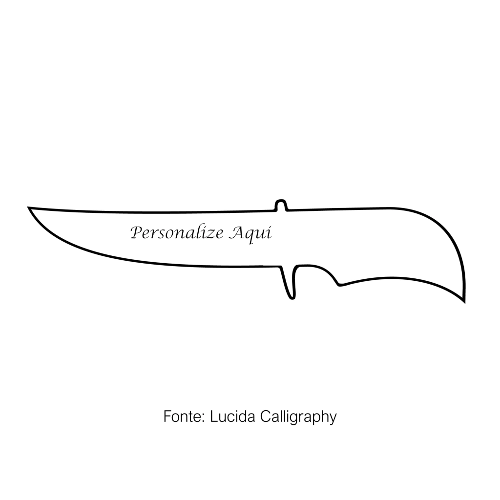 Já imaginou essa faca personalizada? Faça do seu jeito e sua faca ainda mais EXCLUSIVA. Podendo escolher entre a fonte Arial ou Lúcida Calligraphy.